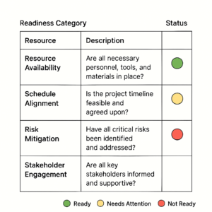 This readiness snapshot highlights the four critical categories assessed during VALEN’s Turnaround Diagnostic. Green signals readiness, yellow indicates areas needing attention, and red flags critical gaps requiring immediate intervention.